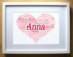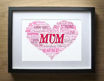 WORDS & PHRASES: Mum, Strong, Caring, Beautiful, Special, heartbeat, Love, shopping, hairdressers, trust, bond, always here, always there, patient, Sunday roast, makes dinner!, Always turn to you, etc. etc.
